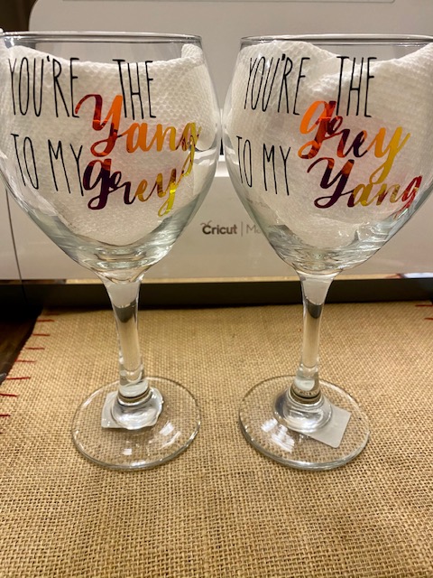 Set of Grey's Anatomy wine glasses with Vinyl.